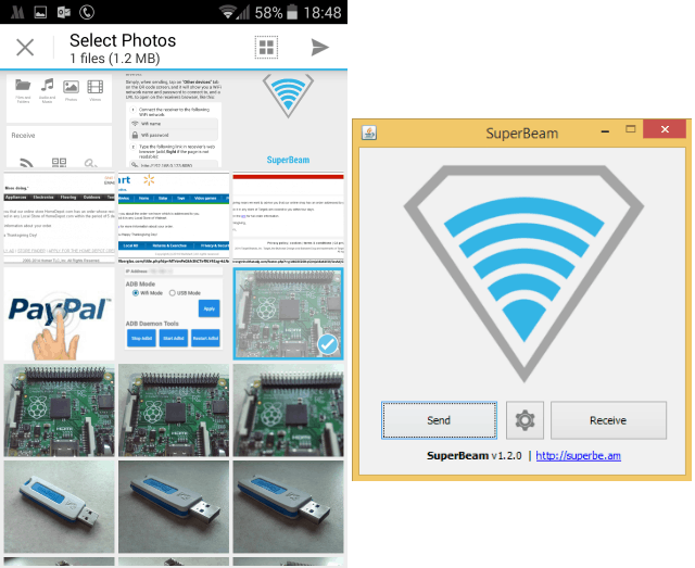 الطريقة الثالثة لنقل وتبادل الملفات بين الكمبيوتر والهاتف تكون من خلال الواى فاى ! نعم، يمكنك نقل الملفات من الهاتف إلى الكمبيوتر والعكس صحيح من الكمبيوتر إلى الهاتف بأستخدام الواى فاى، وفى هذه الطريقة سوف نحتاج إلى تطبيق طرف ثالث متخصص فى ذلك، ولحسن الحظ يتوفر على سوق جوجل بلاى مجموعة من التطبيقات فى هذه الفئة، ولكن من أشهر هذه التطبيقات تطبيق SuperBeam | WiFi Direct Share و PRO version . يمكن تثبيت واحد من هذه التطبيقات على الهاتف الخاص بك وفى الوقت نفسه سوف تحتاج أيضاً إلى تثبيت برنامج Windows companion app على الكمبيوتر الخاص بك والبدء فى نقل الملفات عبر الواى فاى .