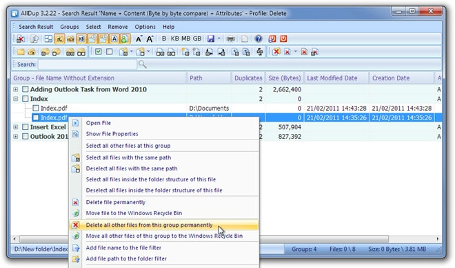 يعد هذا البرنامج واحد من أفضل البرامج المتخصصة فى البحث عن الملفات المكررة على جهاز الكمبيوتر وحذفها ويدعم البرنامج تقريباً جميع صيغ الملفات من صور وفيديوهات وصوتيات ومستندات وأكثر من ذلك، ومن أهم ما يميز هذا البرنامج أنه مجانى التحميل وقوم بالبحث السريع عن جميع صيغ الملفات ويوفر البرنامج العديد من الخيارات التي تساعدك على ازالة الملفات الغير ضروريه المكرره . [التحميل]