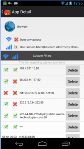 تطبيق جدار الحماية يحمي المعلومات الشخصية الخاصة بك من إرسالها إلى الإنترنت، و يسمح لك لإنشاء قواعد التصفية استنادا إلى عنوان IP، اسم المضيف أو اسم المجال. يمكنك السماح أو منع الاتصالات معينة فقط من التطبيق، والجميل فى التطبيق أنه لا يحتاج الى صلاحية الروت وأكثر من ذلك من المميزات .