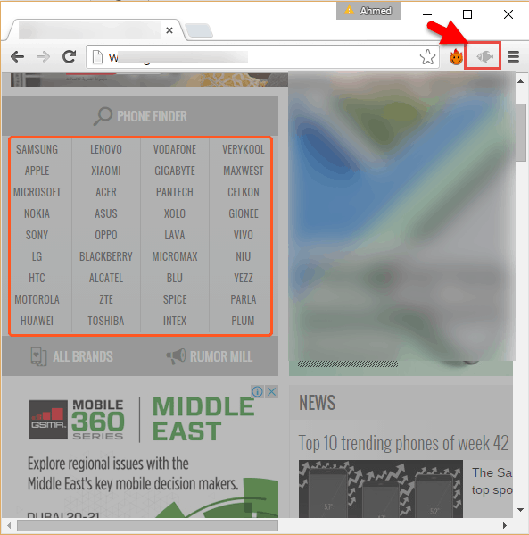 – بعد الانتهاء من تثبيت الاضافة على متصفحك سوف تظهر لك ايقونة الاضافة فى الاعلى فى الجانب الايمن قم بالنقر عليها -ثم حدد الجزء الموجود بها النص فى الصورة كما فى الصورة ادناه .