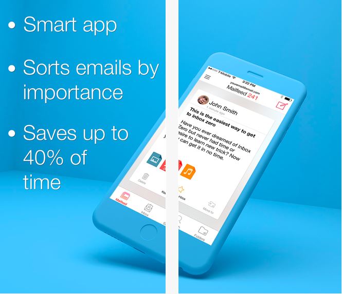 هذا التطبيق مخصص لعرض رسائل البريد الالكترونى بطريقة فريدة، وهو مهم بتحديد للاشخاص الذين لديهم كثير من رسائل البريد الالكترونى ولا يريدون تفويت اى شىء كما ان التطبيق يعمل على توفير الوقت والجهد عن طريق ترتيب رسائل البريد الالكترونى حسب الاولوية كما انه يدعم ياهو وهوتميل وآوتلوك وجيميل وآيكلاود وغير ذالك . {التحميل}