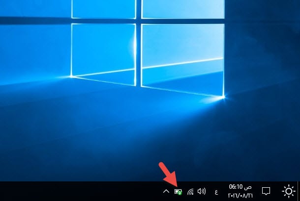 2 : بعد ذلك سوف تلاحظ أن أن علامة البطارية أخذت علامة خضراء صغيرة فوق رمز البطارية من شريط المهام كما فى الصورة، كما تلاحظ أيضاً تقليل درجة السطوع بشكل تلقائى بعد تطبيق هذه الأعدادات .