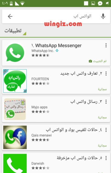 – تقوم بتثبيت احدث نسخة من الواتس اب عن طريق الدخول على متجر جوجل بلاى والبحث عن الواتس اب والتاكد من نسخة البرنامج لديك محدثة الى احدث اصدار وفى حالة اذا كان يتوفر لك تحديث للبرنامج انقر تحديث كما فى الصورة ادناه .