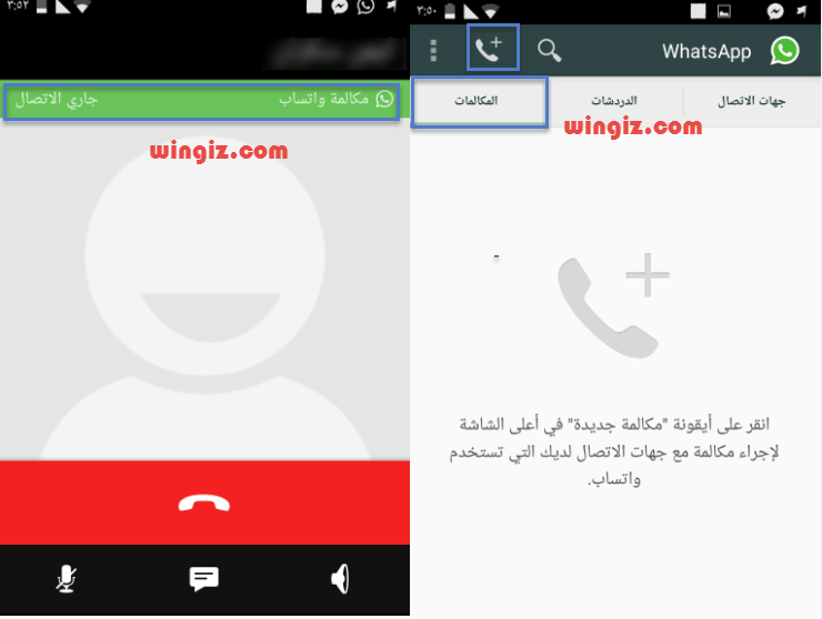– عندما تختر اى جهة اتصال على هاتفك سوف يكون بامكانك اجراء المكالمات الصوتية بشرط ان يكون مثبت برنامج الواتس اب على جهازه الى احدث اصدار رقم 2.12.14 .