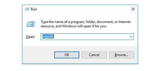 1 : إزالة خيار جميع التطبيقات باستخدام محرر الريجستري والذى يمكن فتحه عن طريق النقر على زر علامة الويندوز + حرف r فى الكيبورد “Win + R ”، ثم بعد ذلك تظهر معك نافذة صغيرة تقوم بكتابة أمر regedit واضغط Enter .