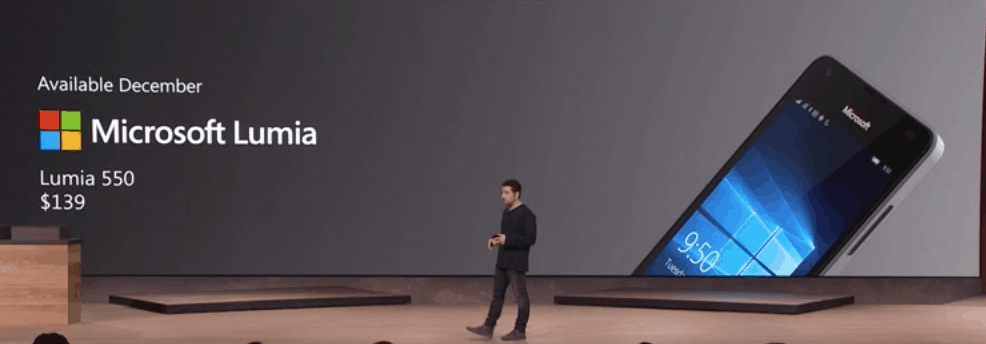 اعلنت شركة مايكروسوفت منذ قليل عن هاتف لوميا 550 ( بالانجليزى : microsoft lumia 550 )، وياتى هذا الهاتف بسعر منخفض فقط 139 دولار امريكى وسيكون متوفر بشكل رسمى فى الاسواق بداية من شهر ديسمبر القادم 2015 .